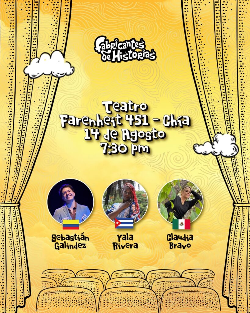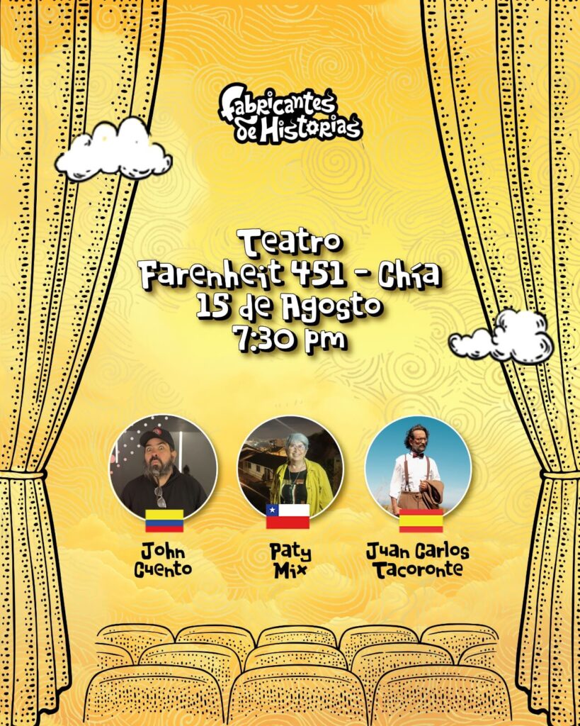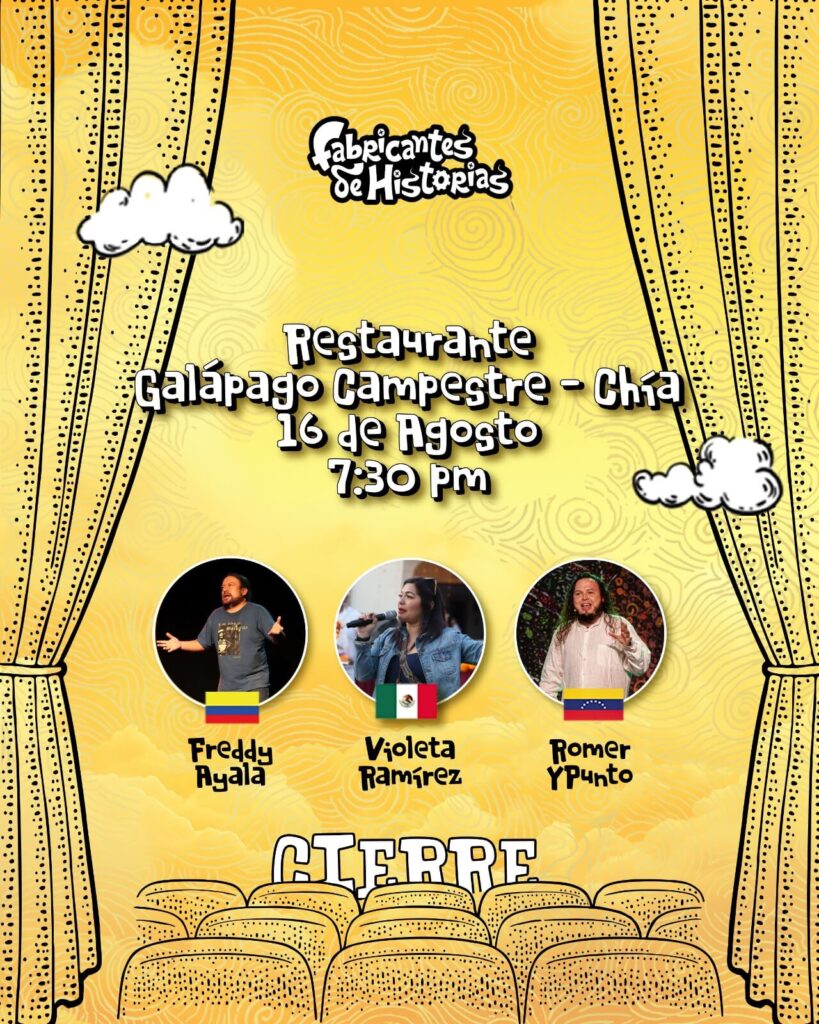 Del 11 al 16 de agosto se llevará a acabo la XVI versión del festival internacional de cuenteria Fabricantes de historias de Chía, un festival que se ha consolidado como uno de los mas importantes del país y Latinoamérica, este año contará con la participación de narradores de España, Colombia, Chile, México, Cuba y Venezuela, toda la información de boletería y funciones se realiza por medio de la página. De instagram @fabricantes_1 o al 3168524556 solo por WhatsApp
